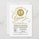 Invitación a la fiesta del 15º aniversario de boda. Diseño elegante en oro falso brillo y blanco. Cuenta con tipografía moderna en letra de script. ¡Salud por 15 años! Se puede personalizar para cualquier año. Por favor, envíeme un mensaje si necesita más personalización.