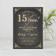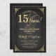 Invitación dorada para el 15º aniversario de boda. Diseño retro vintage elegante con patrón de pizarra negra y dorado falso. Cuenta con tipografía script. ¡Salud por 15 años! Puede ser personalizado para cualquier año de matrimonio. Envíame un mensaje si necesitas una personalización adicional.