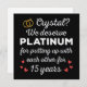 Diseño divertido, perfecto para todo aquel que haya estado casado durante 15 años y para una ceremonia de renovación de la promesa boda. ¡Es un gran conjunto para las parejas! 'Cristalino? Merecemos Platinum por aguantarse la cita de 15 años para una pareja que se casó hace 15 años o una pareja que renueva los votos bodas en su aniversario de cristal. ¿Eres un marido o una mujer romántica? ¡Acentúa tu estilo con este arte! Gran regalo para tu amigo que se casó hace 15 años, esposo o esposa de 15 años, o papá y mamá celebrando su décimo quinto aniversario de boda.
