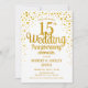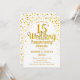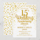 Invitación de 15 Aniversario de Boda Diseño elegante en blanco con fuente de escritura en oro falso y confeti. Envíame un mensaje si necesitas un año personalizado.