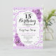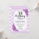 Invitación al cumpleaños 15. Elegante diseño de lavanda blanca con falso purpurina. Rayas plateadas y blancas con rosas lilas moradas. Perfecto para una elegante fiesta de 15 años.