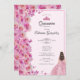 This elegant pink quinceanera invitation has a pink tiara crown, pink roses, glittery dress, and pink butterflies with a personalizable template to create your own message. The invitation template is customizable in the listing editor and is also available as a digital download that's printable after you personalize it.