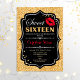 Invitación 16º cumpleaños - Dulce Dieciséis dorados Rojo negr