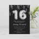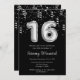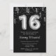 Esta elegante y glamorosa invitación para el cumpleaños incluye el número 16 en plata con confeti plateado. El texto combina el guión manuscrito y las fuentes sans serif modernas para un aspecto elegante y sofisticado.