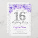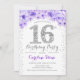 Invitación 16.ª fiesta de cumpleaños - Púrpura de Plata Blanc