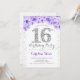 16ª Invitación a la Fiesta de Cumpleaños Diseño elegante en finas platas purpurinas, moradas y blancas. Elegante invitación floral con diamantes y rosas. Perfecto para una celebración de glam. Por favor, envíeme un mensaje si necesita más personalización.