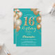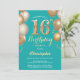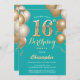 Invitación 16.º Confetti de los Globos Verde azulados y de Or