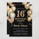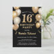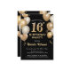 Invitación 16.º cumpleaños Globos Purpurinas de oro y negro