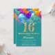 Invitación 16.º cumpleaños Globos Verde azulados y dorados