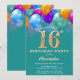 16.º cumpleaños Verde azulado y oro Colorido globos y Confetti Invitación. Para una mayor personalización, haga clic en el botón "Personalizar" y utilice nuestra herramienta de diseño para modificar esta plantilla.
