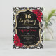 Invitación 16.º cumpleaños - Rosas rojas de oro negro