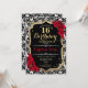 Invitación a los 16 Años Elegante diseño blanco y negro rojo con oro falso purpurina. Presenta un patrón de damasco y rosas rojas. Perfecto para una elegante fiesta de cumpleaños.