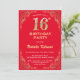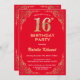 16.ª Invitación de cumpleaños de Purpurina rojo y oro. Para una mayor personalización, haga clic en el botón "Personalizar" y utilice nuestra herramienta de diseño para modificar esta plantilla.