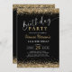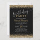 Invitación 16.º Purpurina de oro negro cualquier cumpleaños d