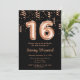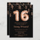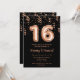 Esta elegante y glamorosa invitación para el cumpleaños incluye el número 16 en oro rosa con confetti de oro rosa. El texto combina el guión manuscrito y las fuentes sans serif modernas para un aspecto elegante y sofisticado.