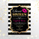 Dulce Invitación De Cumpleaños. Elegante diseño blanco negro con falso oro purpurina. Cuenta con un beso de labios rosas, rayas blancas negras, un confetti y un tipo de letra de guión. Perfecto para una elegante fiesta de cumpleaños. Mándame un mensaje si necesitas más personalización.