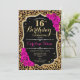 16ª Invitación de cumpleaños. Elegante diseño negro rosa con falso oro purpurina. Presenta impresión animal leopard cheetah, fuente de guiones y rosas rosados calientes. Perfecto para una elegante fiesta de cumpleaños. ¡Puede ser personalizado en cualquier año! Mándame un mensaje si necesitas más personalización.