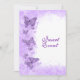 Elegantes mariposas lilac, malva y lavanda violeta con las alas brillantes están respaldadas por un elegante fondo giratorio floral que forma un marco alrededor de plantillas de texto. IDEAL PARA - Fiestas de cumpleaños de chicas como 16, 17, 18, 19, 20, 21, 25, 30, 35, 40, 45, 50, 60 o 70; para la soltera, "tema de la mariposa", los cumpleaños de las mujeres y las mujeres; para funciones de quinceañera; reuniones y banquetes corporativos de alto nivel con un tema "morado y blanco" o para empresas y negocios que albergan una recaudación de fondos de moda para mujeres.