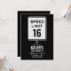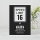 Invitación 16th Birthday Speed Limit Black and White Sign