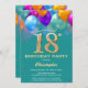 18.º Cumpleaños Verde azulado y Oro Colorido Globos e Invitación Confetti. Para una mayor personalización, haga clic en el botón "Personalizar" y utilice nuestra herramienta de diseño para modificar esta plantilla.