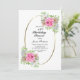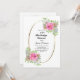 Una cena de color rosa y floral bordeada por una invitación a la cena de 18 años.
