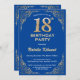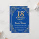 18.ª Invitación de cumpleaños de Purpurina azul y oro. Para una mayor personalización, haga clic en el botón "Personalizar" y utilice nuestra herramienta de diseño para modificar esta plantilla.