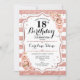 Invitación a los 18 Años Elegante diseño rosa dorado y blanco con falso purpurina. Rayas blancas con rosas rosadas. Perfecto para una elegante fiesta de cumpleaños. Se puede personalizar en cualquier año. Mándame un mensaje si necesitas más personalización.