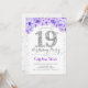 Invitación 19.ª Fiesta de Cumpleaños - Púrpura Plata Blanca