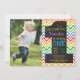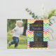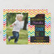 Invitación a la pizarra de cartón arcoiris con foto personalizado. Invitación a la fiesta de primer cumpleaños del niño o Chica. Palabras moradas azules y verdes de color rojo Naranja. Fondo de Chevron Arcoiris colorido. Para una mayor personalización, haga clic en el botón "Personalizar" y utilice nuestra herramienta de diseño para modificar esta plantilla.
