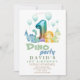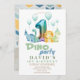 Invitación al cumpleaños de Dino a un fiesta temática de Wild para un niño. Elegante tarjeta moderna con un tipo de letra en color verde acuarela. Los cumpleaños de los niños son especiales, y esta invitación puede ayudarle a hacer una fiesta de cumpleaños memorable.