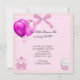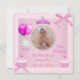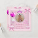 Primer cumpleaños Primer Fiesta de cumpleaños, bebé, niña pastelita rosada, foto de Pearl Bow rosa blanco. Elegante y elegante, todo el tiempo cambia la edad. Plantilla de invitaciones de cumpleaños de fiesta