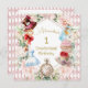 Alicia en el País de las Maravillas Invitación al primer cumpleaños Diversión de Fiesta de té Crea el perfecto 1er cumpleaños con la temática "Alicia en el País de las Maravillas" con esta encantadora invitación con flores de acuarela rosa y elementos inspirados en Alicia. Personalízalo para tu fiesta de té y hazlo un evento memorable.