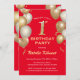 Invitación 1.ᵉʳ cumpleaños de globos negros y Purpurinas rojo