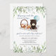 Invitación 1.ᵉʳ cumpleaños Teddy Bear Picnic Blue Greenery In