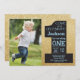 Primer Purpurina de oro de cumpleaños e invitación azul con foto de personalizado. Invitación a la fiesta de primer cumpleaños del niño o Chica. Purpurina de oro falso y fondo negro. Para una mayor personalización, haga clic en el botón "Personalizar" y utilice nuestra herramienta de diseño para modificar esta plantilla.
