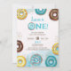 Tarjeta de invitación plana de 1 cumpleaños, decorada con una imagen de donuts dulces y deliciosos.