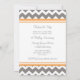Tarjeta de invitación de fiesta de primer aniversario de bodas en divertido y moderno patrón de zigzags y rayas retro chevron en naranja tangerina, gris y blanco, elegante y contemporáneo. Personalizable con los detalles de su fiesta.