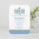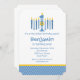 Diseño personalizado lindo para 1r Jánuca del bebé y cumpleaños con nueve velas azules que parecen un menorah. Número grande 1 con la estrella de David y del texto adaptable. ¡Original de PinkInkArt!