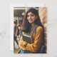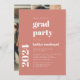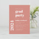 Esta sencilla y moderna invitación a la fiesta de graduación incluye un minimalista texto blanco sobre un fondo de terracota. Añada el nombre y el año de clase del graduado en elegante tipografía en negrita y los detalles en letra sans serif. Reemplace fácilmente la foto de muestra al revés con su propia foto vertical.