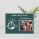2926 Happy New Year Script photo Collage Multi-Photo Holiday Card -- featuring modern script -- the year spelled out with the "aid" of a clock -- and four of your favorite photos -- one on the front and three on the back. It is a happy and joyful -- yet sophisticated - way to send new year's wishes to friends and family. If you need any design assistance, just send a chat or an email to charmdesignstudio@rcn.com and we'll be delighted to assist.