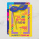 Happy Purim Festival Modern Invitation card for Family or Kids Party. Translation from Hebrew: Happy Purim! (Hag Purim Sameah)