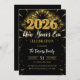 2026 New Year's Eve Party Black & Gold Glitter Invitation