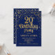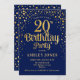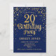 Invitación a la fiesta de cumpleaños número 20. Elegante diseño en azul marino y falso oro purpurina. Presenta un diseño elegante de tipo de letra y letra de guión. Mándame un mensaje si necesitas edad personalizado.