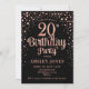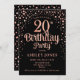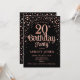Invitación a la fiesta de cumpleaños número 20. Elegante diseño en oro rosa negro y falso purpurina. Presenta un diseño elegante de tipo de letra y letra de guión. Mándame un mensaje si necesitas edad personalizado.