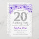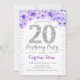 Invitación 20.ª Fiesta de Cumpleaños - Púrpura Plata Blanca
