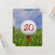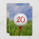 Cerca de una pelota blanca de golf sobre una teta roja en el césped para la invitación de la fiesta de cumpleaños 20.