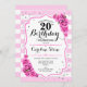 Invitación 20.º cumpleaños - Rosas de franjas blancas rosadas
