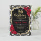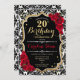 Invitación de cumpleaños 20 Elegante diseño blanco negro rojo con oro falso purpurina. Incluye damasco y rosas. Perfecto para una elegante fiesta de cumpleaños.
