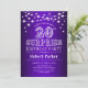 Sorpresa 20 cumpleaños Invitación a fiesta Diseño blanco morado con luces de cuerda de hadas. Elegante diseño perfecto para la elegante celebración sorpresa del cumpleaños.