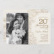 20 Aniversario Con Foto - Invitación Floral Marfil Dorado. Diseño moderno con acentos de dibujos de contorno botánico y tipografía en fuente de letra script. Tarjeta de invitación sencilla y trendy perfecta para una celebración de aniversario de boda con estilo. Puede ser personalizada para reflejar cualquier año de matrimonio. Impreso en invitaciones de Zazzle o plantilla digital descargable instantáneamente.